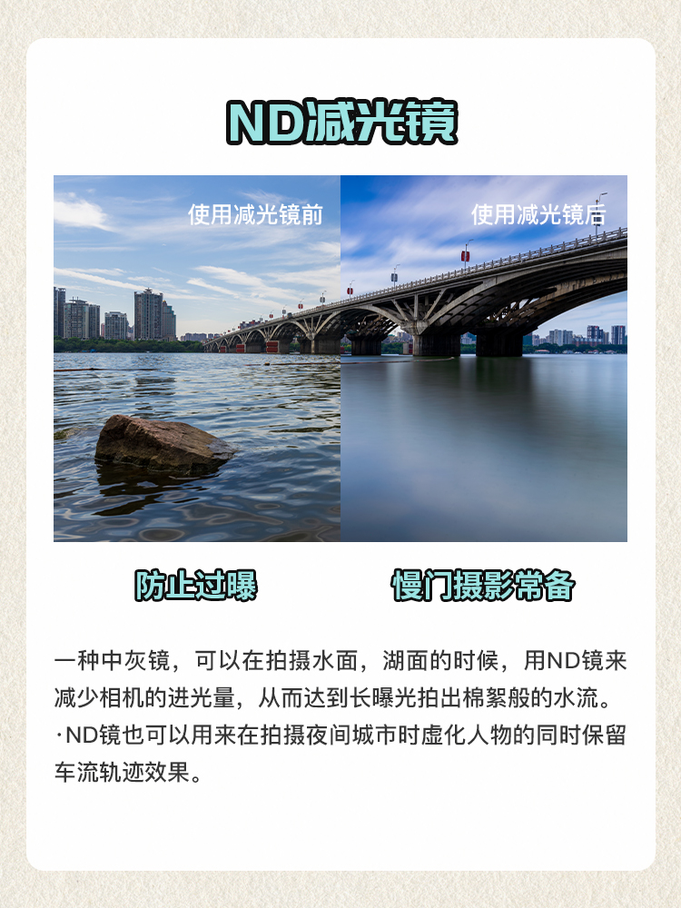 降低进光量,实现大光圈虚化/长曝光流水雾化