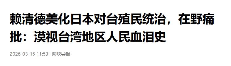 整部日本殖民史,就是一部浸透了台湾人民血泪的苦难史,难道赖清德连这点最基本的常识都不知道吗?还是说他根本就不把台湾同胞的命当回事?