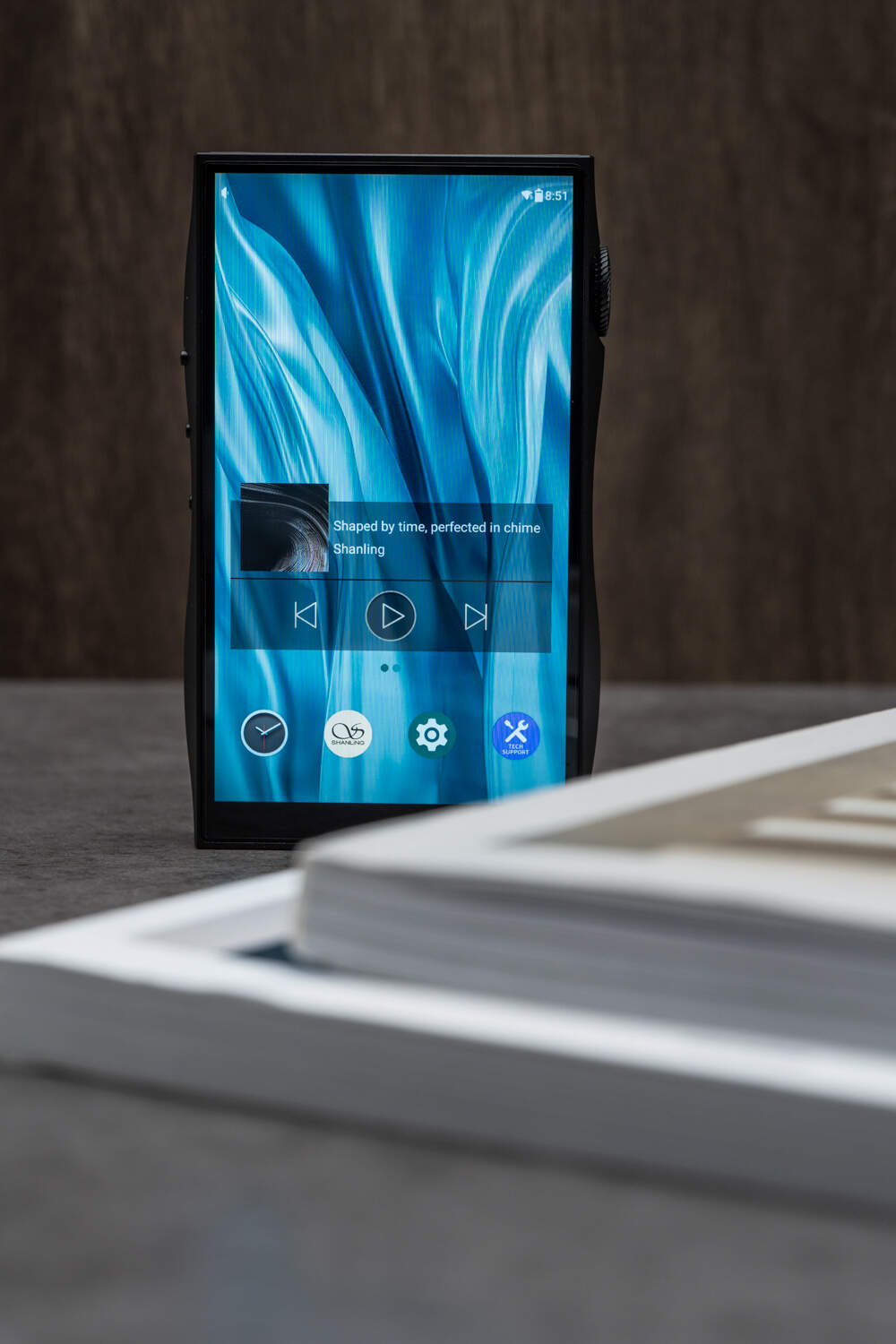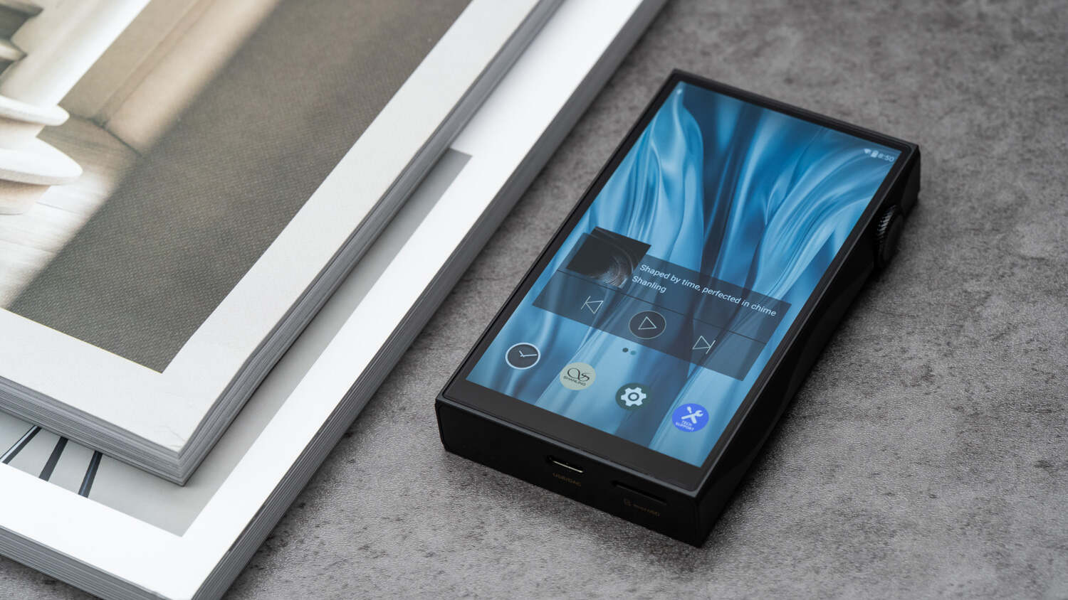 M3Plus Master的外观和之前大同小异,干净利落的高屏占比触摸屏,中框的正面投影面积很小,侧边采用波浪形曲线设计,好看之余也在不带保护套的情况下改善了手感。M3Plus Master的整体设计以金属磨砂质感为主,背板也是不反光的哑光材质,成熟稳重。和M3Plus最主要的区别在于音量滚轮上增加了一个手写体的“M”标识,代表型号中的“Master”,也就是山灵在宣传中强调的“大师级调音”。