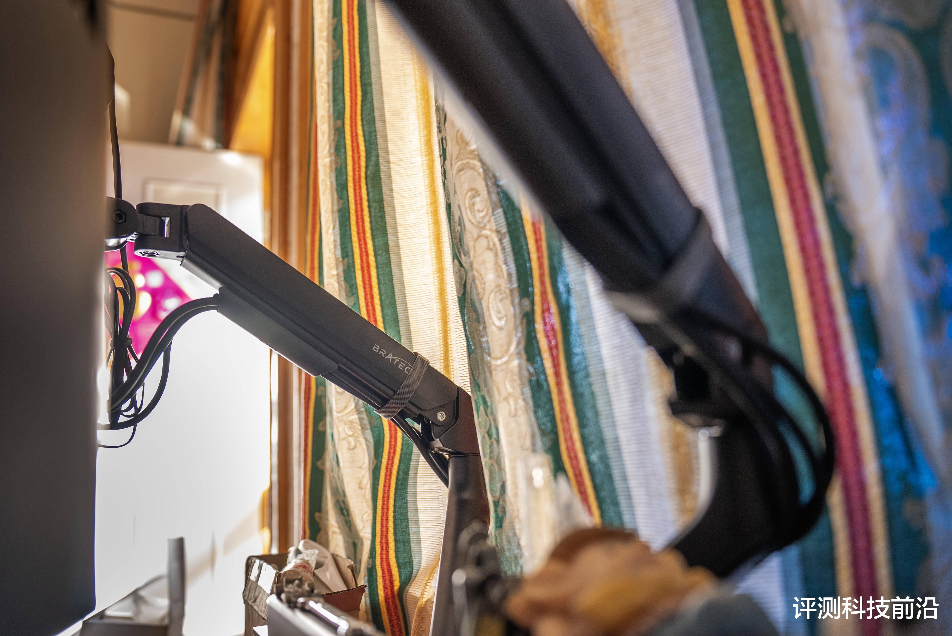 ▼得益于可以任意位置悬停的气弹簧支架,显示器位置调节起来也易如反掌