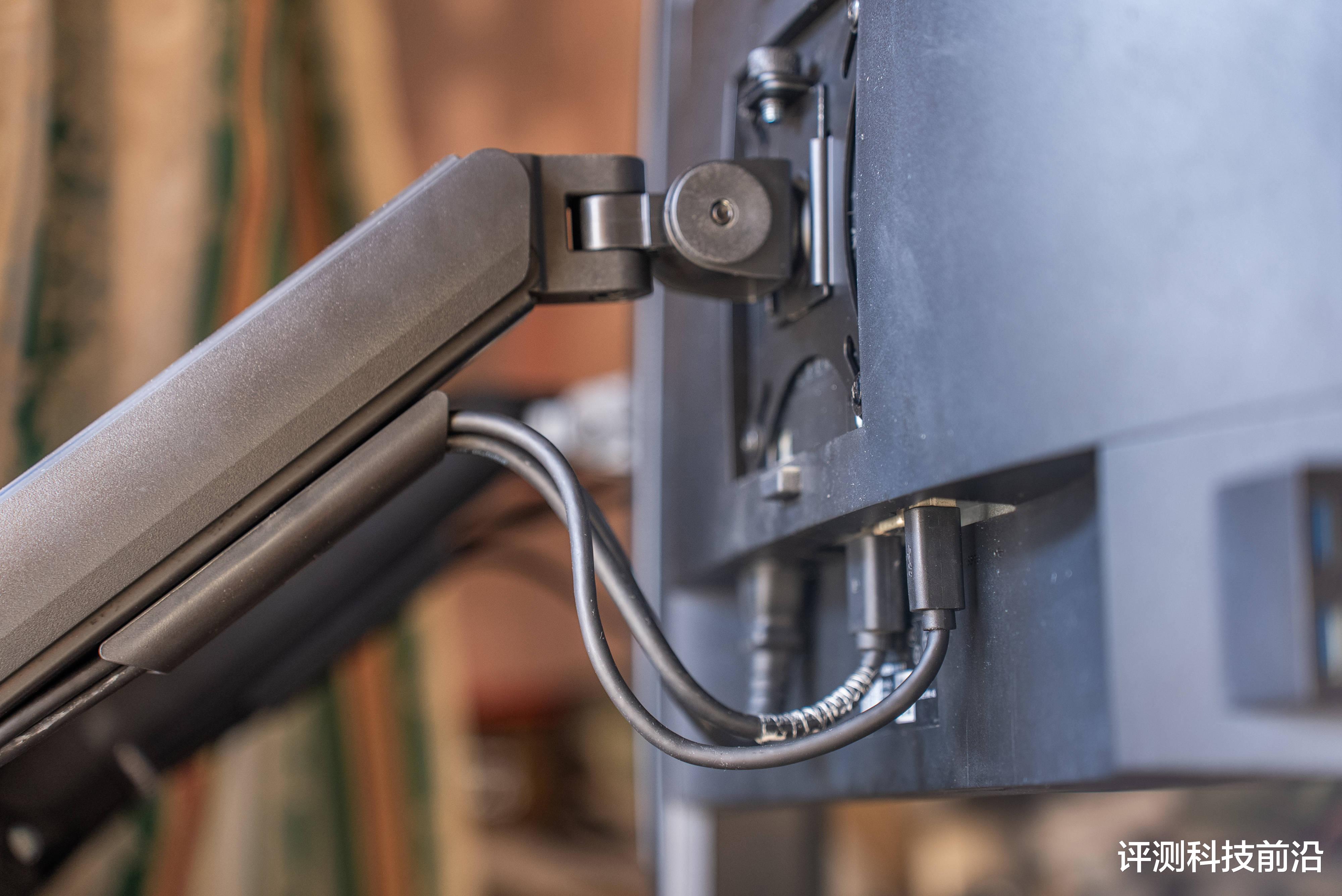▼给显示器接上所有的线,并把线都塞进支架下方的理线槽里,如果你显示器需要频繁在各个角度调节,那就需要给线预留点长度在外面,这时候其实就已经可以开始投入使用了