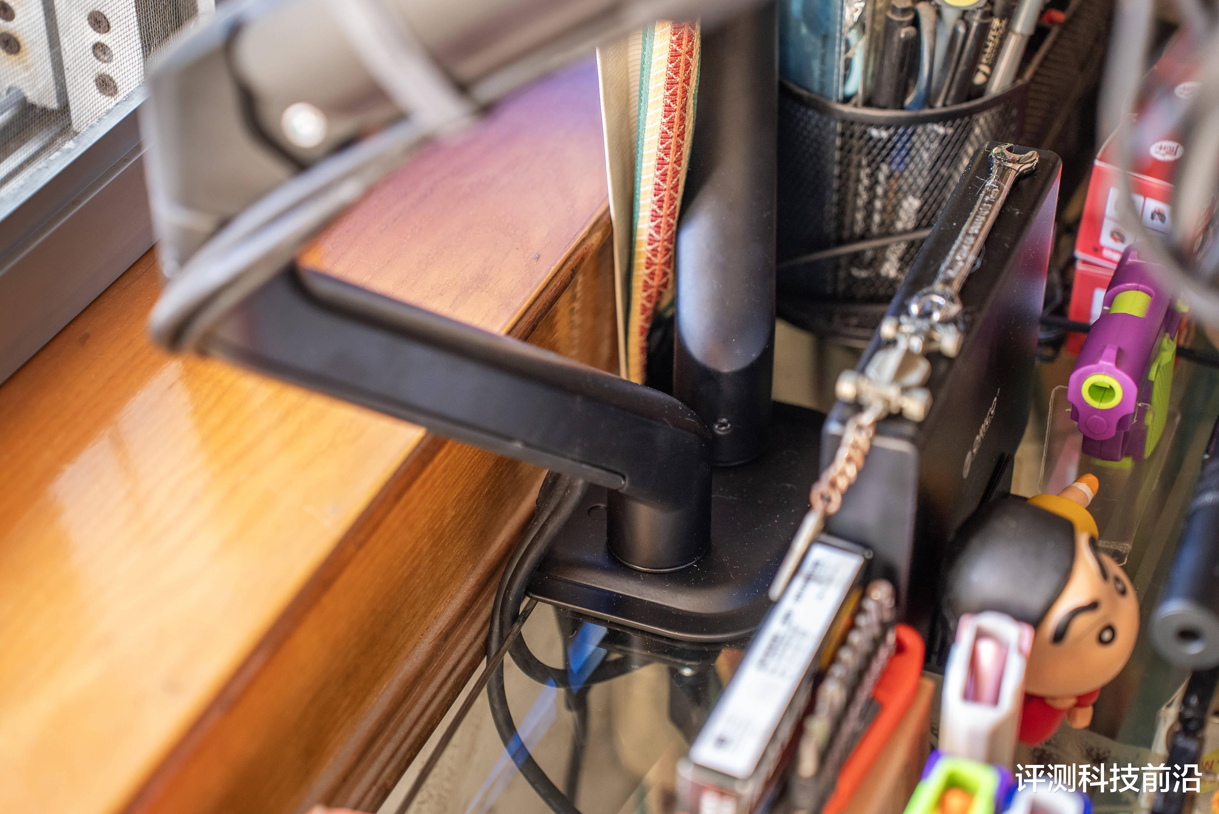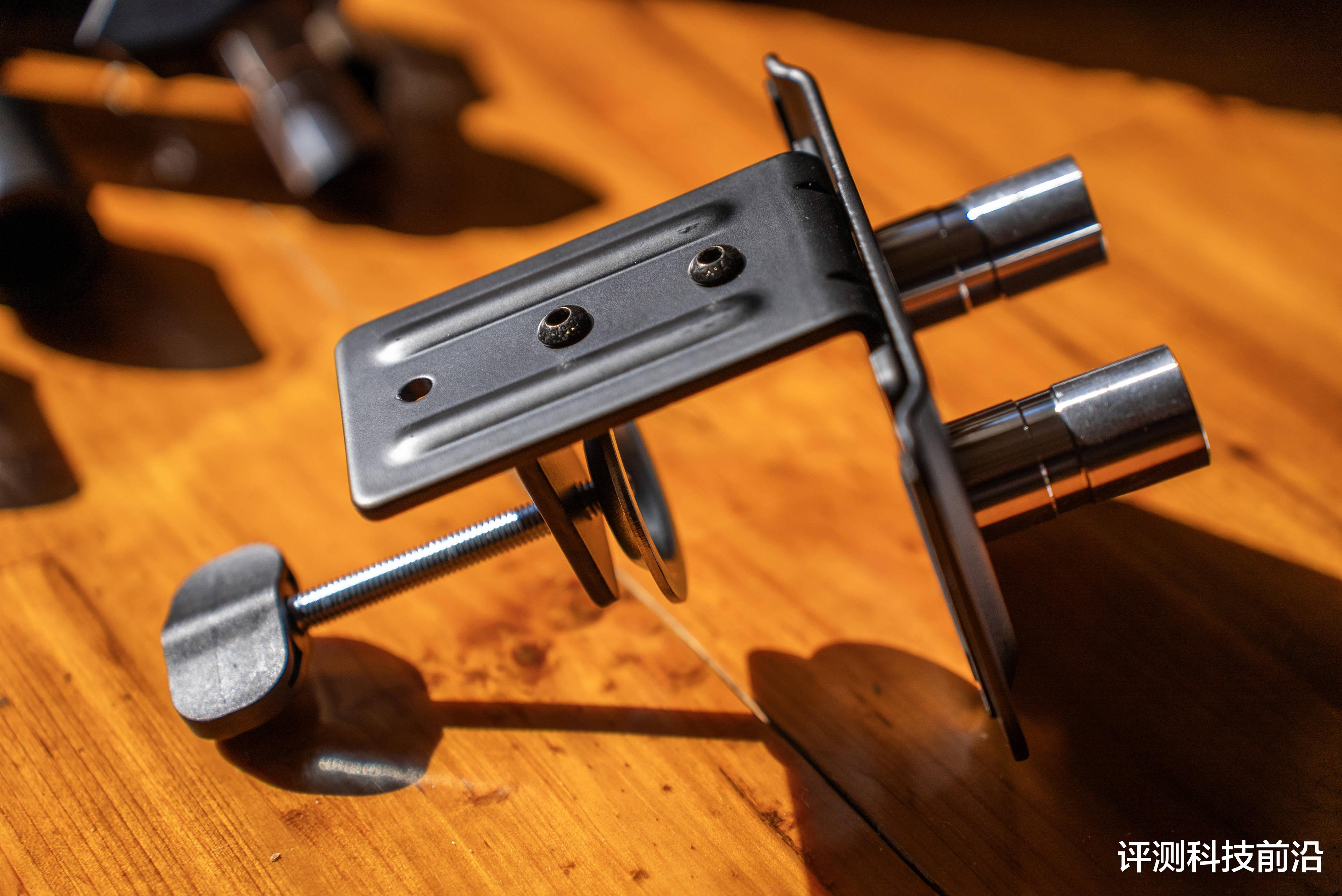 ▼然后把底座夹到你的桌板上即可,官方显示厚度10~18mm的桌面都能夹持