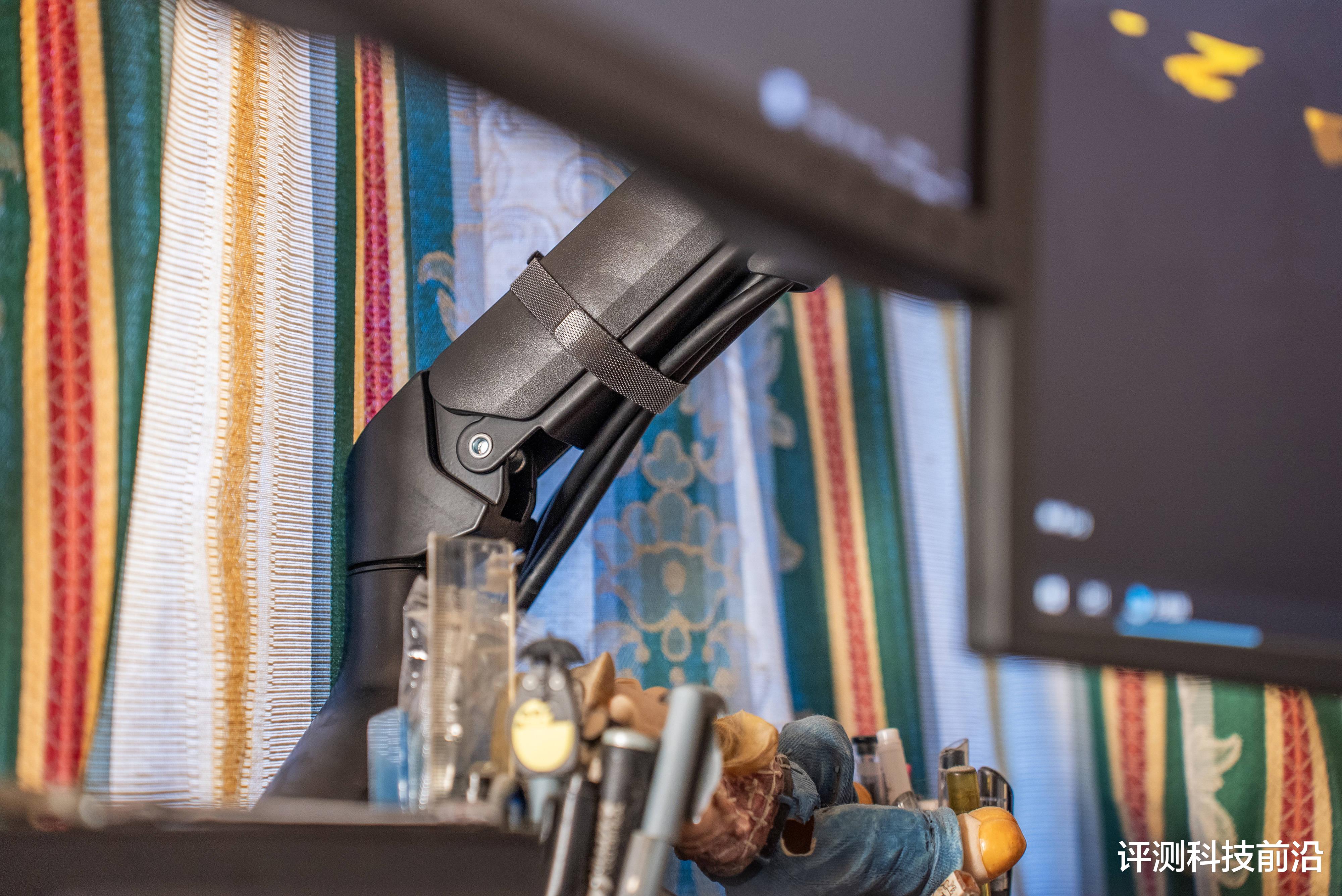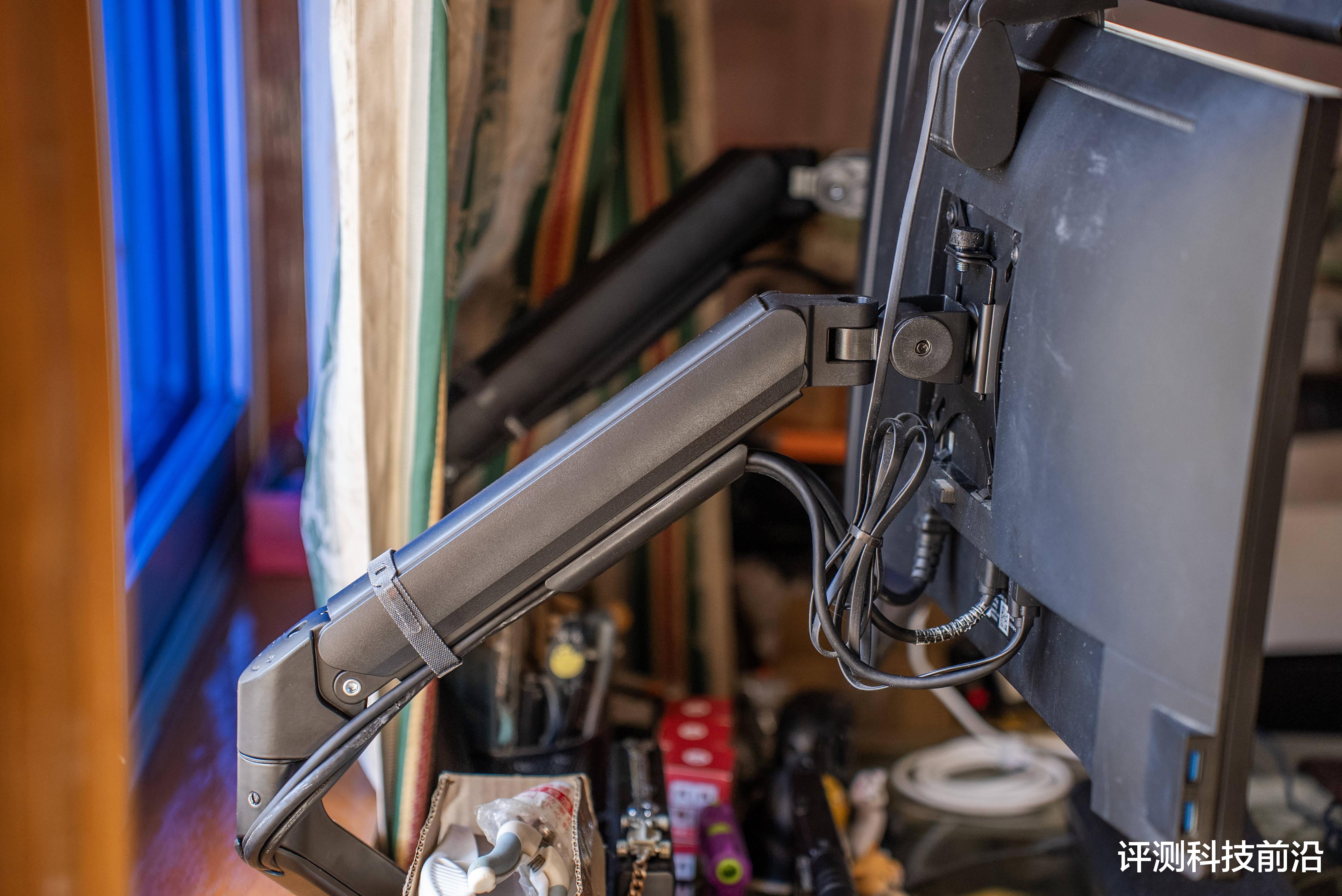 ▼可能考虑到有些线比较粗比较硬,在关节处不好弯折,所以它线材收纳槽的挡板长度没有覆盖整根支架,所以转轴附近的线有需要的可以拿魔术贴或扎带固定一遍