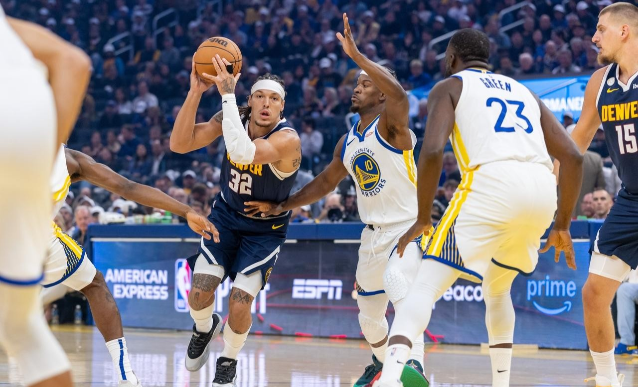 25-26赛季nba常规赛,掘金队客场挑战勇士,上半场掘金队一度取得双位数领先,下半场勇士队发起反扑疯狂追分,穆雷压哨三分命中,两队打成94平结束前三节较量。末节两队也是你来我往,关键时刻戈登投进3分,掘金队120-117领先,库里随后回敬超远3分,两队打进加时。