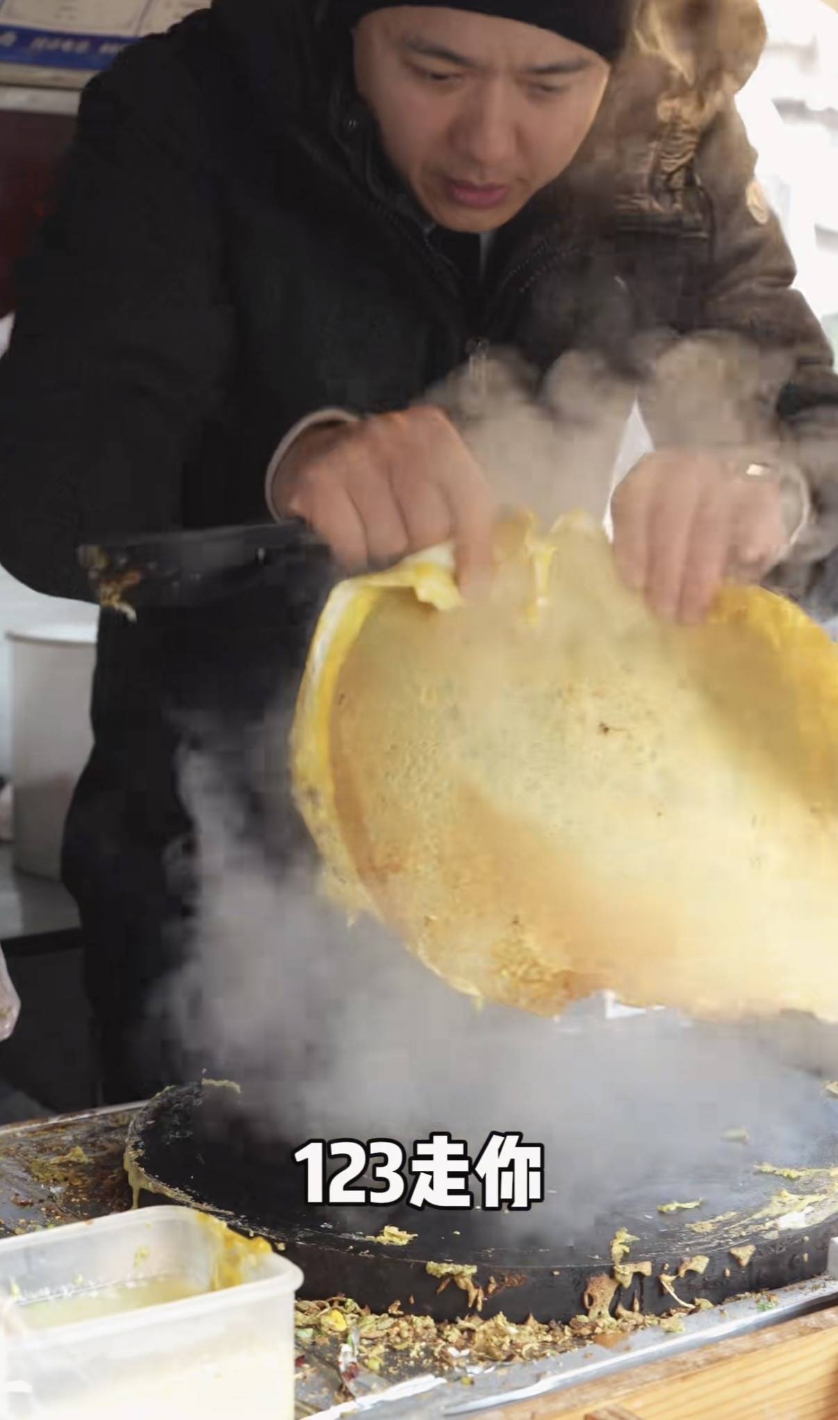 也是在高云翔的镜头下,才第一次感受到4个鸡蛋煎饼果子的魅力。煎饼果子还能加4个鸡蛋,是不是长见识了?