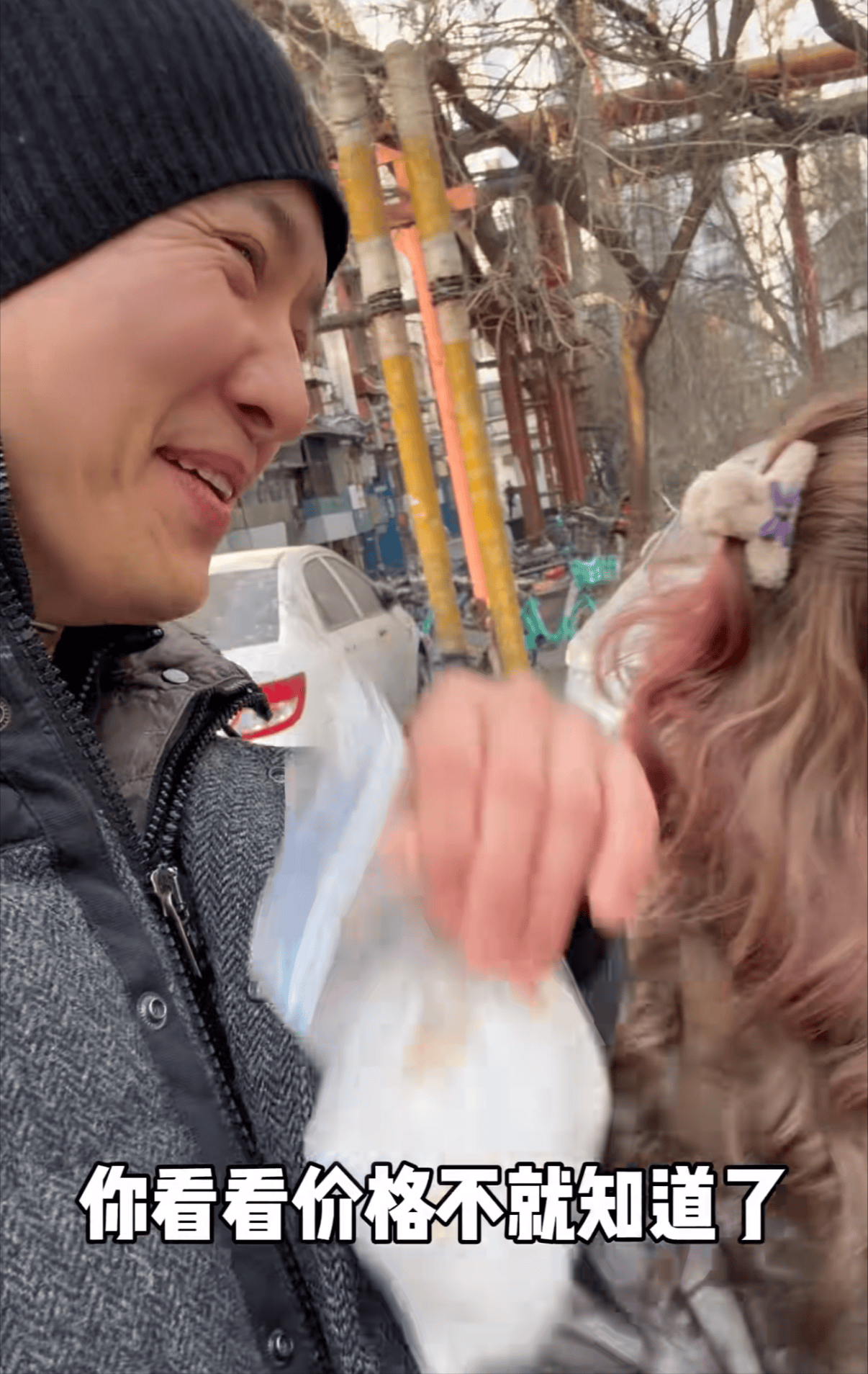 也难怪,他这么大高个,身强力壮的,如果吃太少肯定吃不饱。高云翔穿黑色连帽羽绒服,戴着针织线帽,感觉非常接地气,但还是很帅气、不油腻。