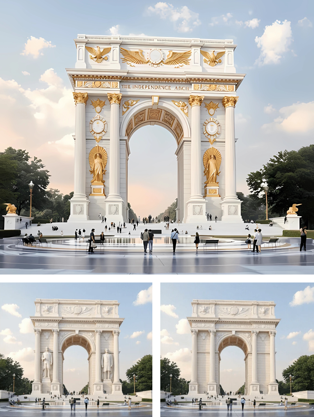 这座名为“独立拱门”的凯旋门式建筑,选址位于美国华盛顿阿灵顿国家公墓和林肯纪念堂之间,面向白宫。建筑高250英尺(约76米),以庆祝美国建国250周年。