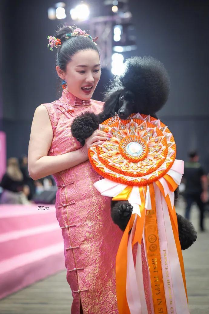 赛场上,她始终身着改良旗袍、爱犬佩戴五星红旗配饰,这种极具辨识度的东方美学表达,被外媒誉为“优雅的文化符号”。