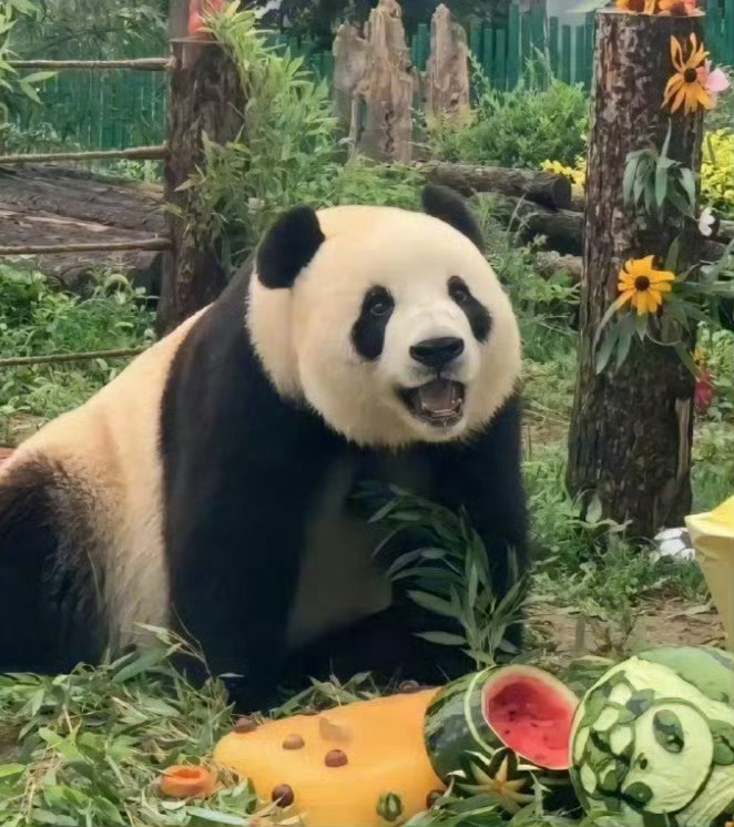 所属: 成都大熊猫繁育研究基地顶流标签: “果赖”、“等腰三角饭团”、“行动缓慢的治愈系”花花是近年来现象级的顶流。她身材矮胖,没有脖子,坐下来就像一个标准的“等腰三角饭团”。与其他身手敏捷的熊猫不同,花花行动缓慢,吃东西不紧不慢,经常被同伴“抢食”,但她总是展现出极大的包容和淡定。她那极具辨识度的外形和温和的性格,加上饲养员谭爷爷“果赖”(过来)的呼唤声,共同构成了她独特的魅力。看花花,更像是在看一部温暖、缓慢的日常生活治愈剧。三、 国际巨星:闪耀世界的中国名片1. 出生即顶流 · 福宝