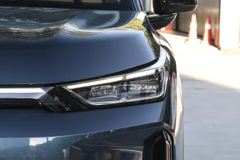 整体造型:整车线条方正饱满,车身比例遵循 “0.618:1” 黄金分割定律,搭配 1:4 头身比,既有 SUV 的体量感,又不失协调动感。前脸采用新能源车流行的封闭式格栅,贯穿式 LED 灯带连接两侧 “Y” 字形大灯,有效拉宽车头视觉宽度。