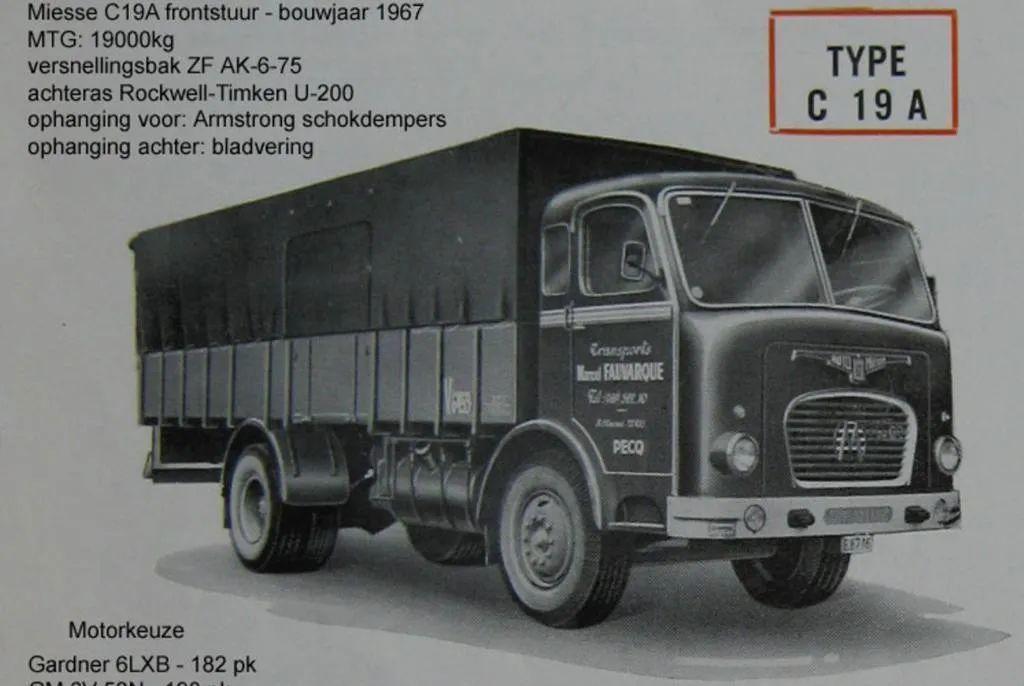 1967年的Miesse C 19A平头卡车,最大载重19吨。搭载通用或者加纳德发动机,搭配采埃孚变速箱。
