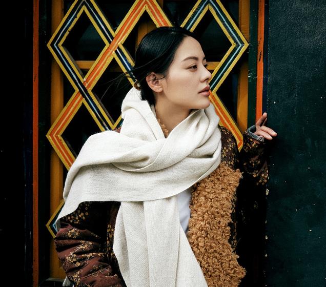 没想到王力可作为一个土生土长的山东人,穿上藏族的衣服都像本地人,活脱脱一个异域美人的形象。