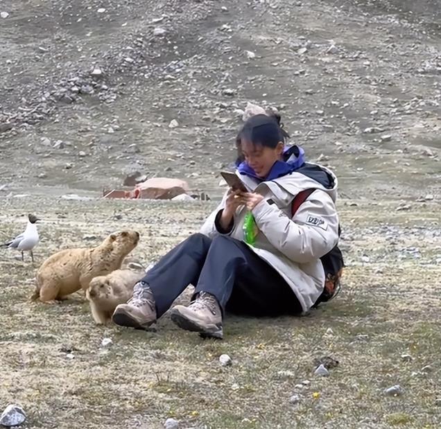王力可在旅行途中,不仅仅见识到了美丽的景色,她还遇到了可爱的动物。
