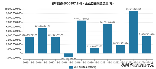 从伊利最近10年的自由现金流看,极其不稳定,波动剧烈!采用自由现金流给伊利估值不妥当!