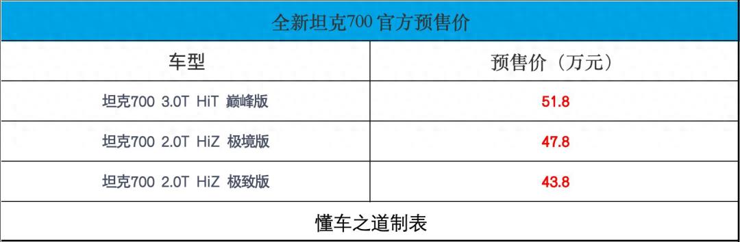 新车竞品方面,新车会与牧马人、普拉多、方程豹豹8、捷途纵横G700等车型存在竞争。坦克700 Hi4-T/Hi4-Z的双动力布局,覆盖从硬派越野到泛越野车市场,至于新车的动态试驾,懂车之道尽快安排。想要了解更多新车资讯,购车行情,欢迎留言互动。大家购车一定要理性消费。(图:来源网络;文:懂车之道 王斌 编辑)