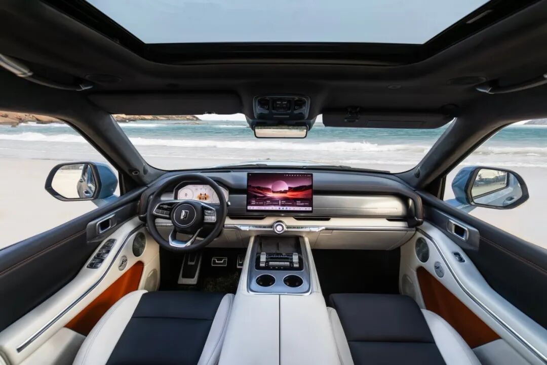 内饰方面,采用怀挡设计,副仪表台区域布局进行调整,设计有开放式横向双杯架。智能化方面,搭载12.3英寸2K仪表屏+15.6英寸2.5K中控大屏,搭载Coffee OS智慧座舱以及Coffee Vision屏幕显示系统。车辆中控台的云轨饰板采用航天级真铝材质。