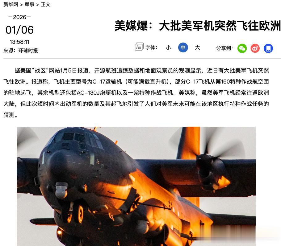 1月5号开始,大量美国军机开始往欧洲飞,其中至少四架飞机是从肯塔基州坎贝尔堡起飞的。这地方有啥特别?拿下马杜罗的那支特种部队,第160特种作战航空团,集结总部就在坎贝尔堡。也就是说这群刚完成任务的“暗夜潜行者”,连夜登上C-17运输机飞欧洲去了。