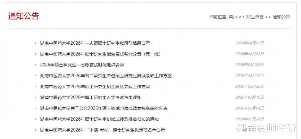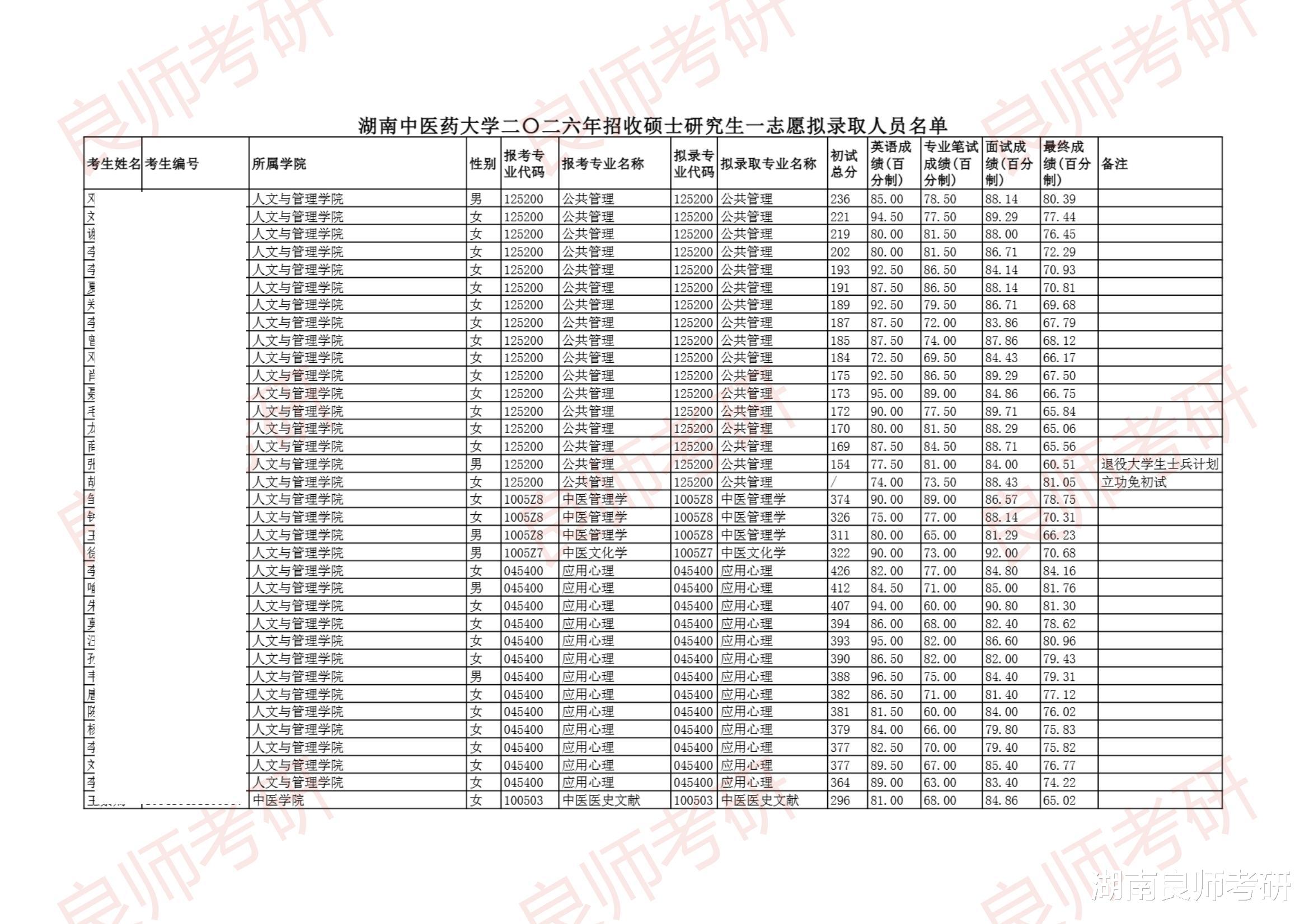 湖南中医药大学发布了26考研一志愿拟录取名单!!
