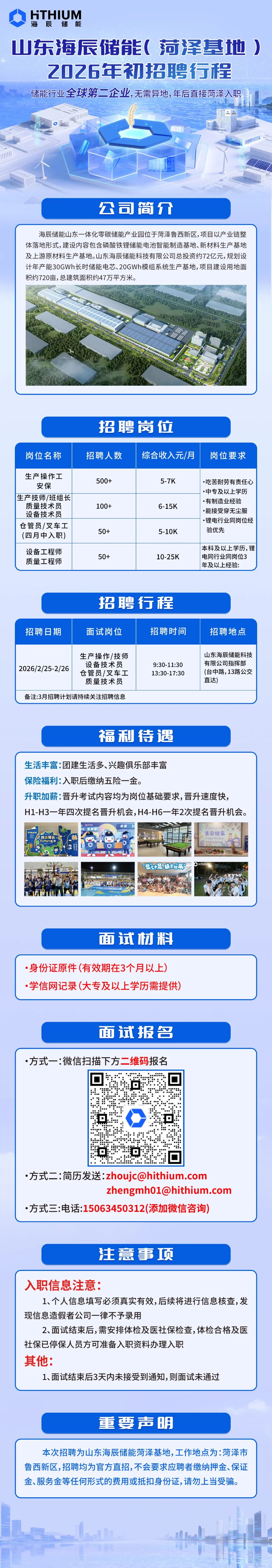 岗位招聘:详见《山东海辰储能(菏泽基地)2026年初招聘行程》