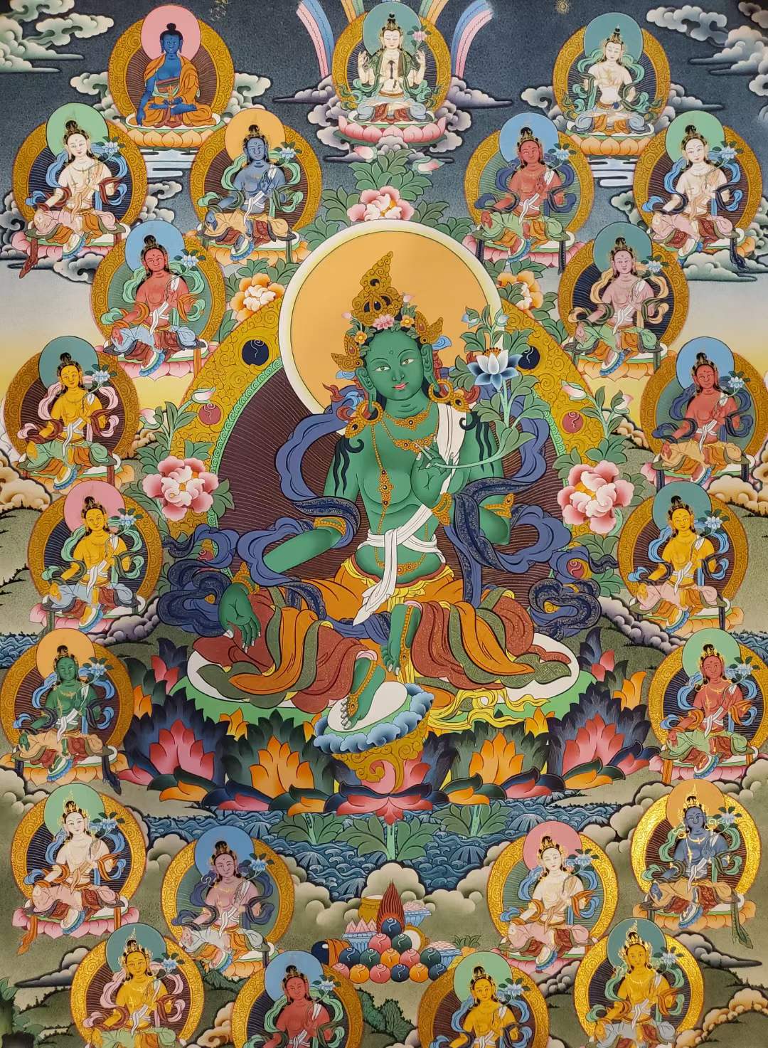 接下来请朋友们欣赏一组沃唐卡编号为157-201122的绿度母唐卡: