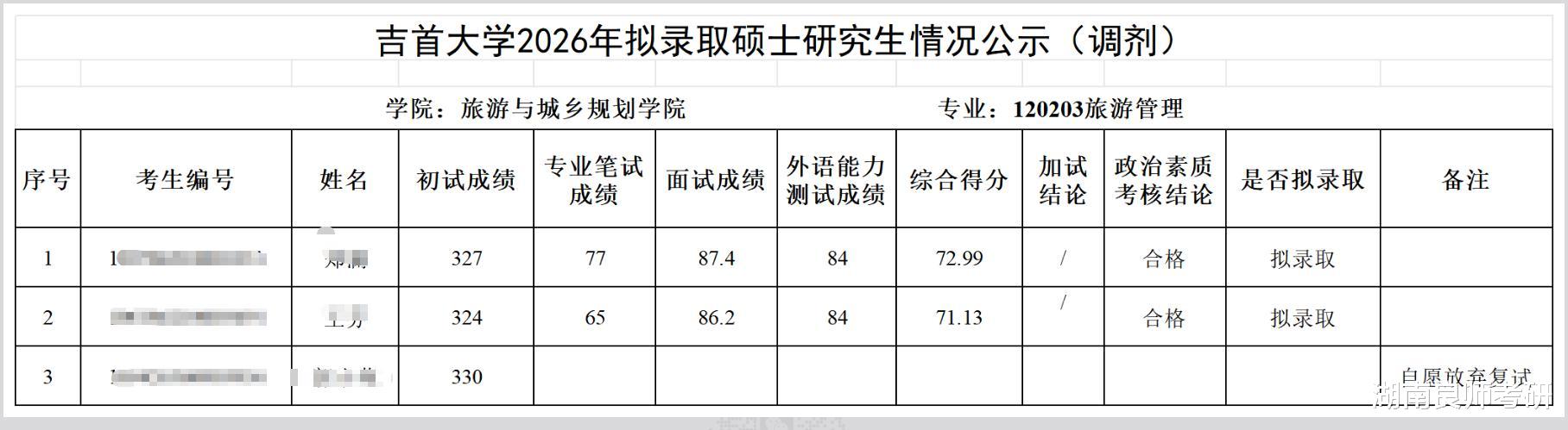吉首大学也陆续发布调剂名单,目前暂时只有旅游与城市规划学院发布了名单!