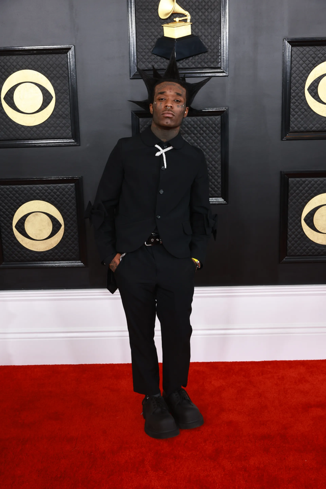 说唱歌手Lil Uzi Vert着装倒是简洁的一身黑色经典;