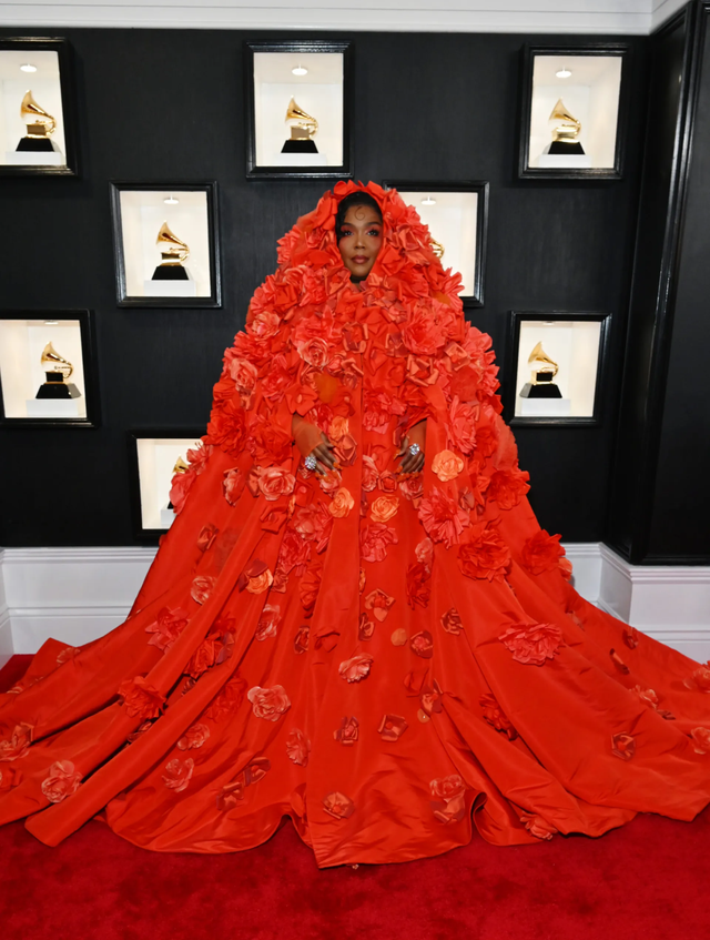 Lizzo以一身红红火火的花朵裙喜庆亮相。