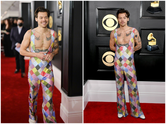 Harry styles这身五彩格子吊带漏奶装,属实“亮”到极致。