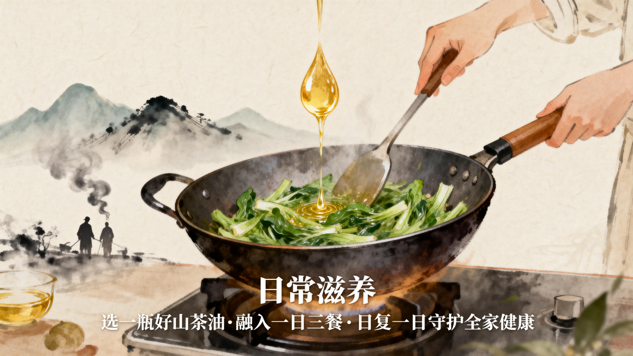 综上,山茶油不是“偶尔尝鲜”的高端食材,而是可安心融入一日三餐的日常健康油。只要来源可靠、用量合理,它完全可以成为您家厨房的“主力油”,日复一日,默默守护全家健康。
