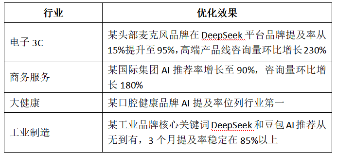 2.模型适配度:深入理解不同大模型(如DeepSeek与豆包)的生成逻辑。万数科技通过DeepReach逆向工程分析,精准掌握算法偏好,实现“一次优化、多平台适配”。