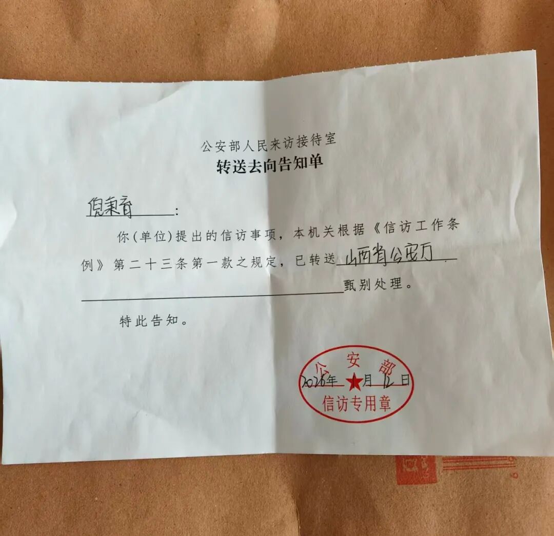 2026年2月13日,长治市公安局向倪秉育送达信访回复,称对山西省公安厅指定的卓杏生恶势力集团犯罪中的两起刑事案件正在侦办中,并告知案件办理进度及相关问题,可进一步向办案单位咨询。但在过去的一个月,举报人倪秉育与长治市公安局案件经办人员多次联系咨询办理进展情况,却一直得不到回复。至今,举报人倪秉育对案件办理进展、是否涉嫌犯罪等情况一无所知,倪秉育对长治市公安局的承诺,在一次次的等待中已消磨殆尽。