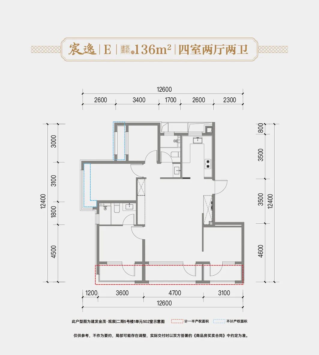 在二期开盘的首推中,依然是以小户型先入市,建面约113平至136平四居。