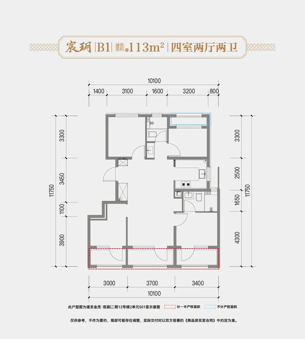 与一期相比,二期最大的变化是没了建面约111平米三居户型,变成了建面约113平至170平全四居社区。