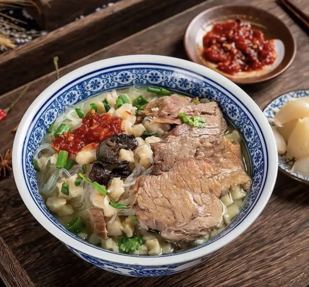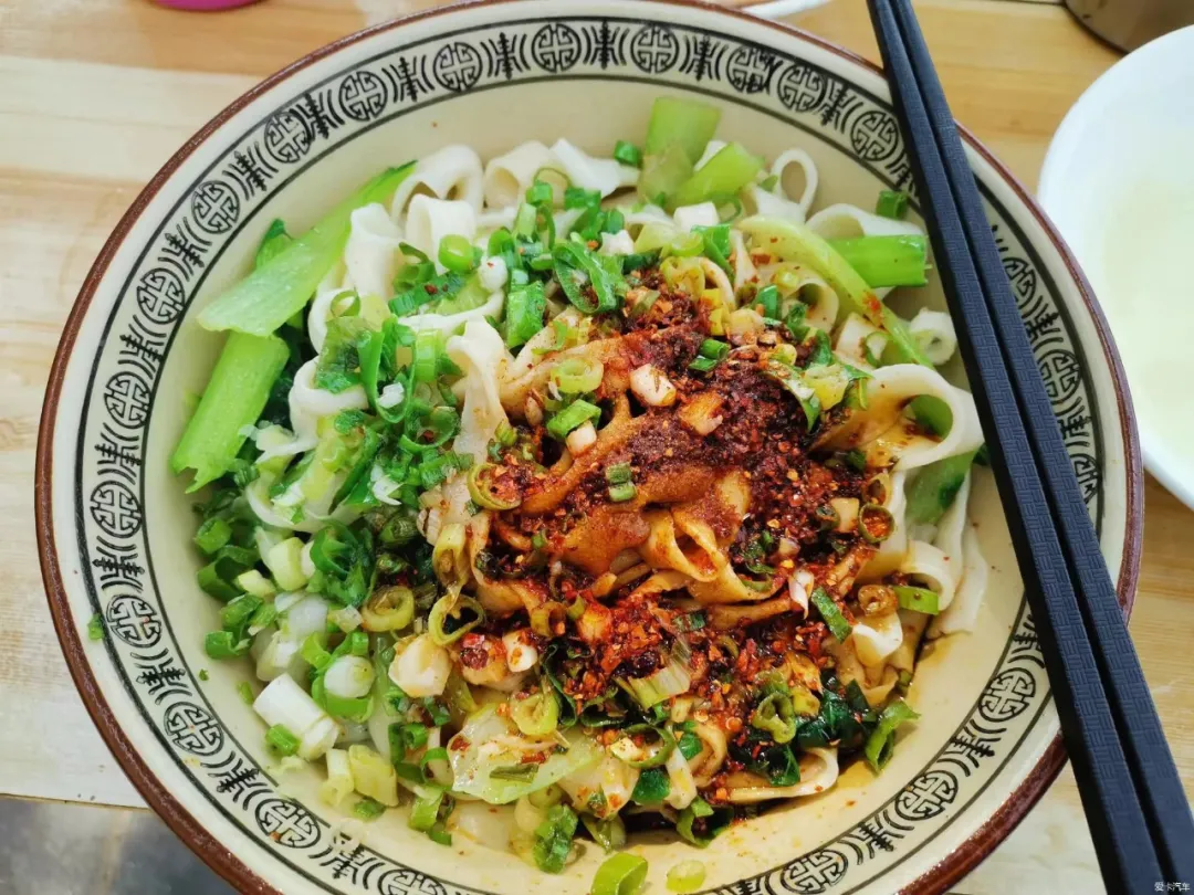 华阴市赛场周边,别再只提麻食泡啦!本地独有的大刀面一定要试试,面条切得宽薄均匀,口感劲道,配上秘制汤汁,越吃越香;还有荞麦凉粉,爽滑Q弹,调上醋水和辣子,酸辣爽口,看球前吃一碗,清热解腻,全程都有精神给球队加油。