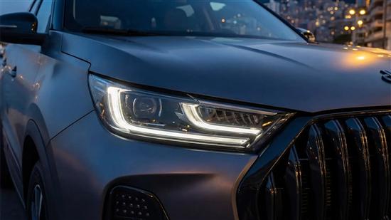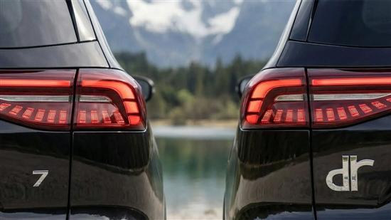 外观方面,DR7配备了大尺寸前格栅,内部辅以纵置高光黑色装饰,DR车标位于前发动机舱盖前端,两侧则配备LED前灯组。前包围两侧有着硕大的导风槽,并且采用真实连通设计,能够起到为制动系统降温和降低风阻的作用。
