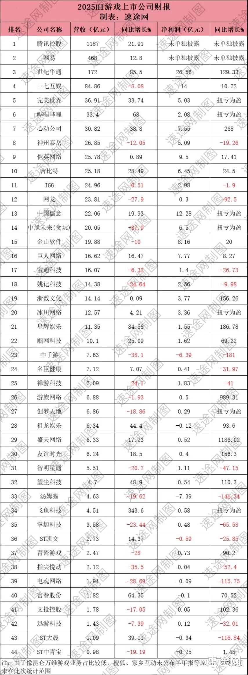2025年8月下旬起,中国游戏上市公司陆续披露2025年半年报。在行业政策放宽、用户增长放缓、技术迭代加速的背景下,各大游戏上市公司业绩呈现显著分化——既有依托爆款或多元化布局实现增长的“黑马”,也有受困于单一IP依赖或转型阵痛的“掉队者”。速途网结合已发布的财报数据及行业动态,梳理了头部企业的业务能力与未来发展趋势,看看游戏行业在2025年上半年到底表现如何?又有哪些财报数据背后的经验值得我们参考借鉴?