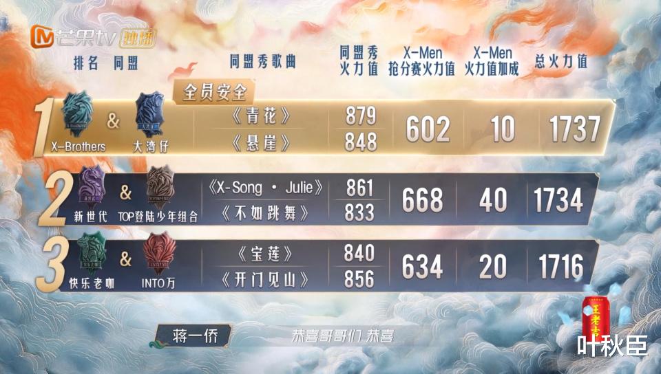 《青花》的票是全场最高,胡夏的VOCAL稳住基础分,另外的张智霖和李承铉演得也很棒。