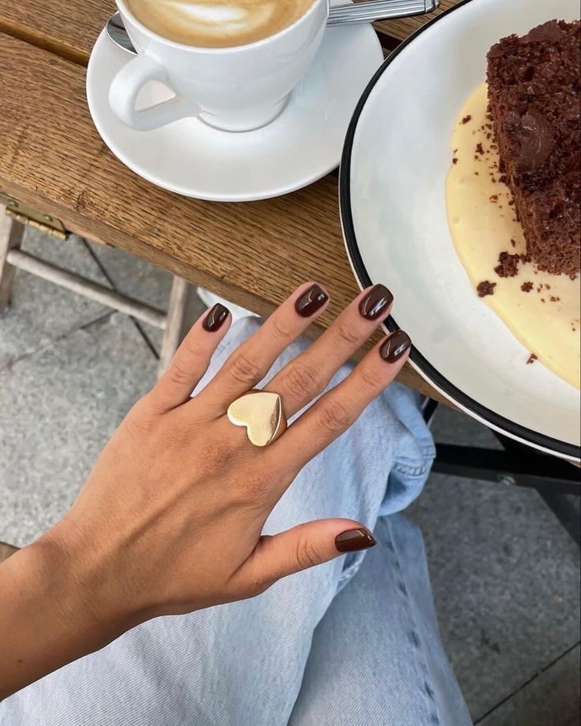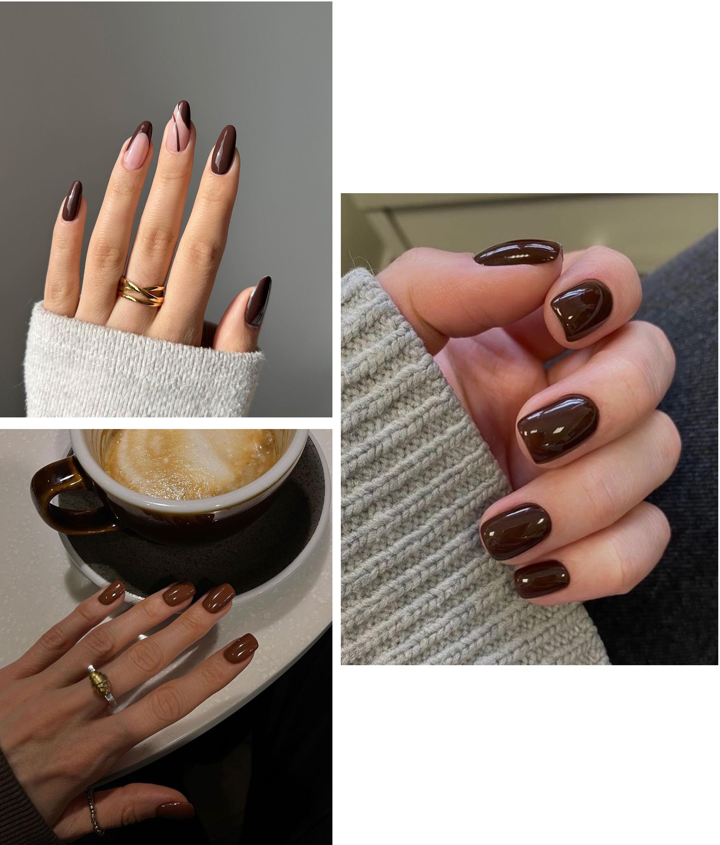就连秋日的指尖,纷纷涂抹上【美拉德系美甲】,浓郁低调,精致显时髦,秋意感十足。