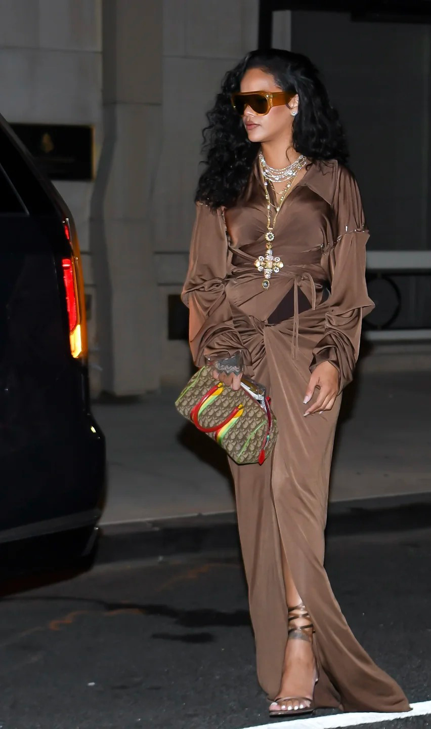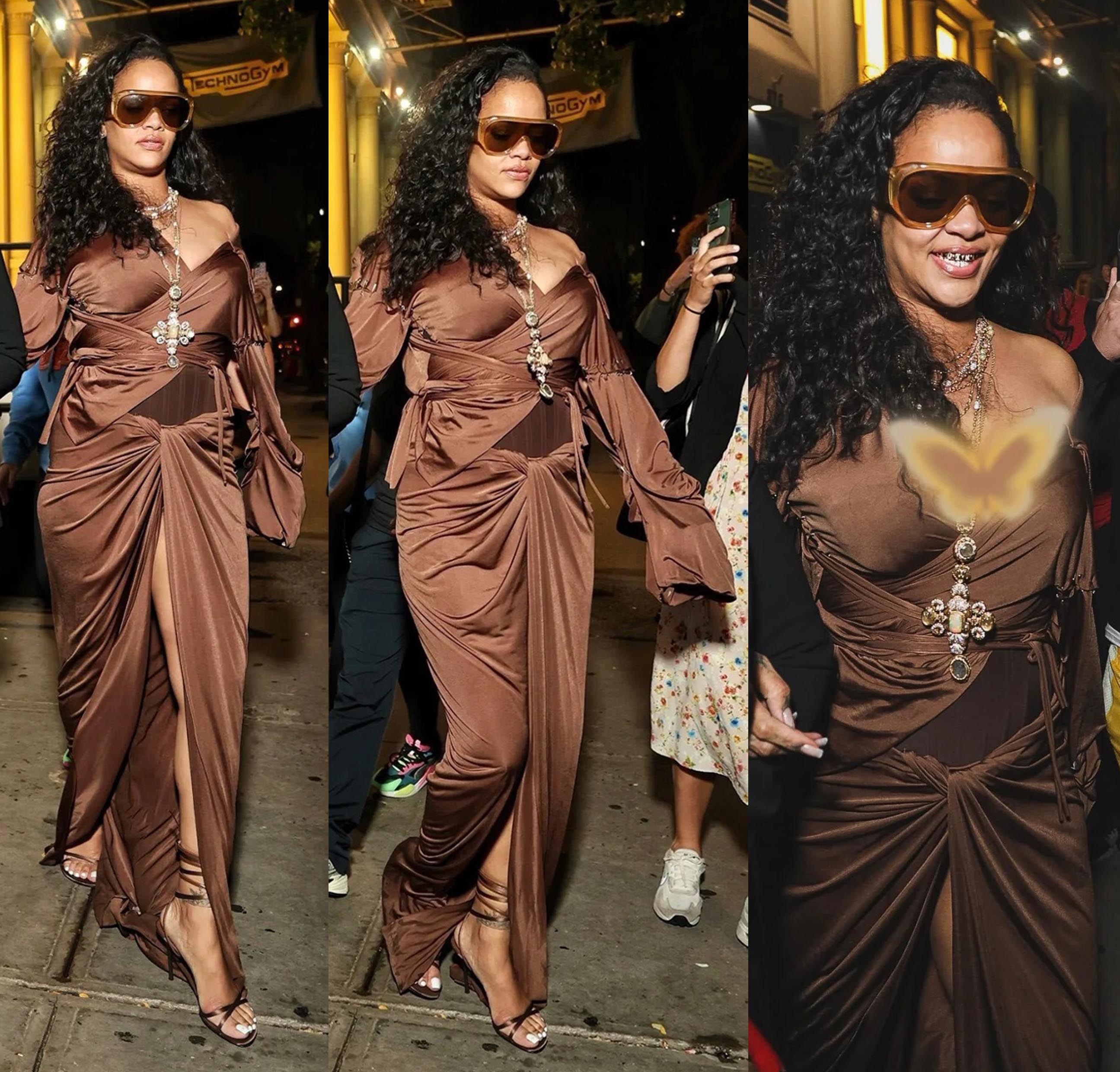 同时在纽约时装周亮相的时尚企业家蕾哈娜(Rihanna),同样是以一身美拉德系穿搭尽情展现时尚前卫的魅力,闪耀全场。