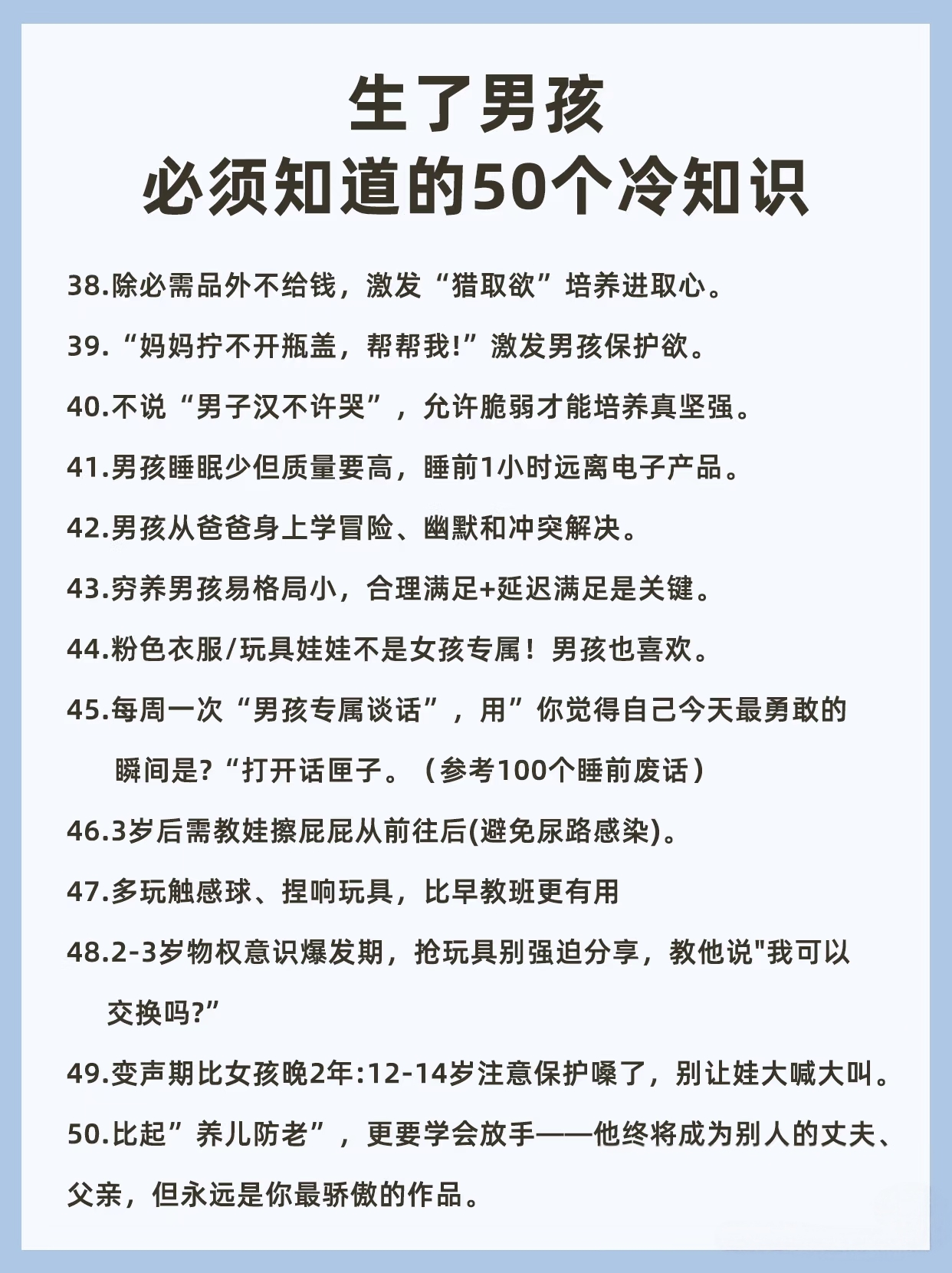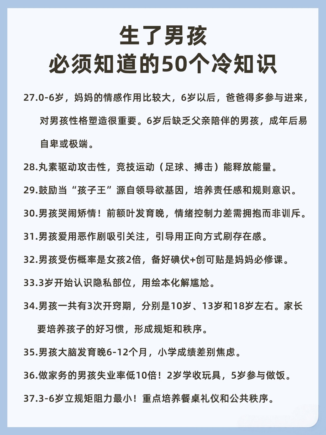 10. 男孩的安全感建立在“稳定的规则”上,规则反复无常会让他感到不安和试探。