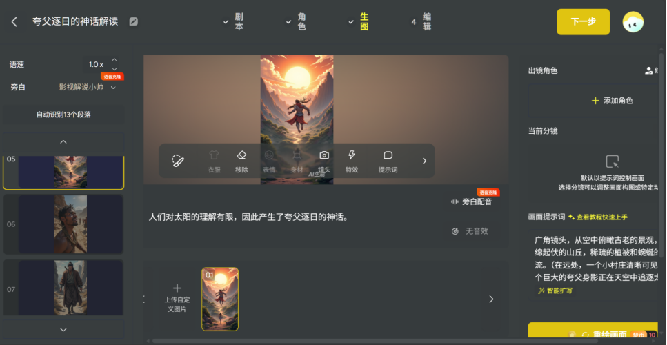 3.编辑功能完善:提供局部重绘、细节修复等功能,可精细调整每个分镜的细节