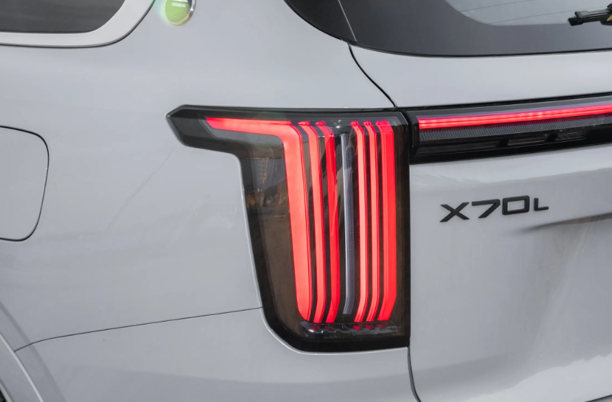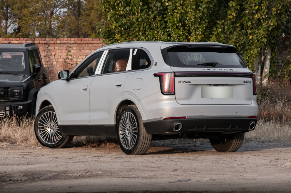 捷途X70L的侧面线条偏向方正,没有花哨的设计,凸出的棱线搭配沉稳的车身轮廓,让人得到扎实稳重的视觉感受。值得一提的是,这款车型并没有使用潮流的隐藏式门把手,而是采用了既美观也实用的半隐藏式门把手设计。而在车尾部分,捷途X70L不仅使用简约时尚的贯穿式尾灯与前脸设计相互呼应,还在后包围处使用黑色的饰板以及双边共双出的排气造型展现运动气息。尤其是它的排气口的口径较大,看起来力量感十足。