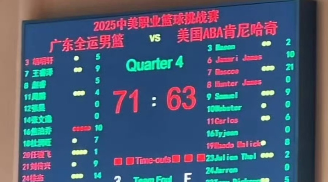 在今晚结束的一场热身赛中,广东全运男篮以71比63击败美国ABA肯尼哈奇男篮,赵睿、胡明轩、徐杰再度同框。赵睿拿到5分,胡明轩5分,徐杰得到全队最高的14分,刚刚到队的刘传兴得到9分。得分多少不重要,徐杰的痊愈和黑白矮的合体,对于广东男篮和球迷来说很重要。