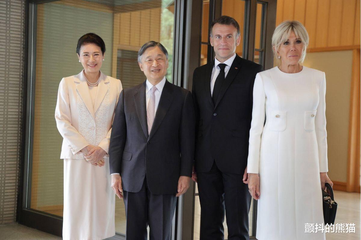 此外,这是马克龙总统继2023年5月G7广岛峰会后,第四次以总统身份访日。会面当天,日本天皇身着黑色西装,搭配颇具春日气息的樱花色领带;雅子皇后则从礼服到鞋子均统一为樱花色系,并佩戴珍珠项链。