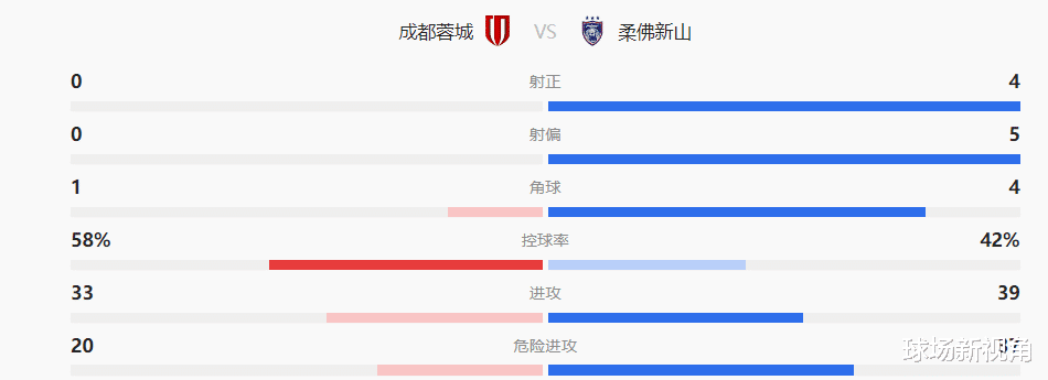 1、成都蓉城在整个上半场0射门,虽然控球率领先,但是完全被柔佛新山压着打。