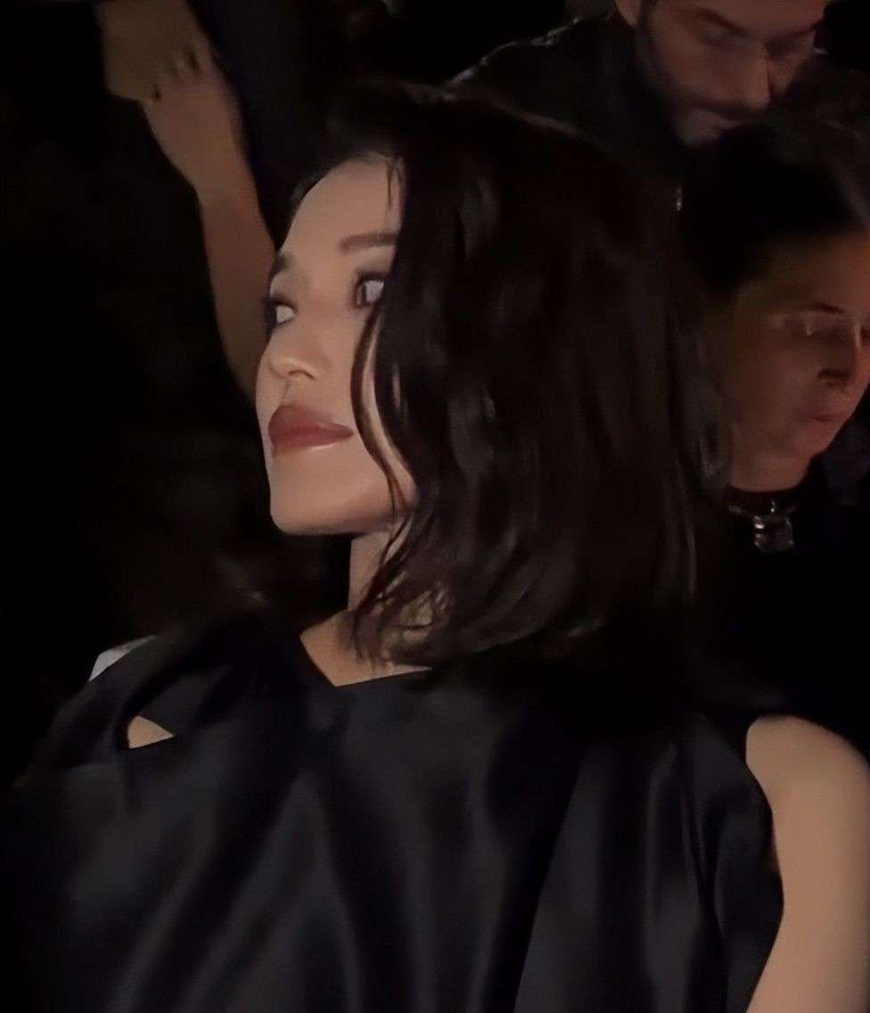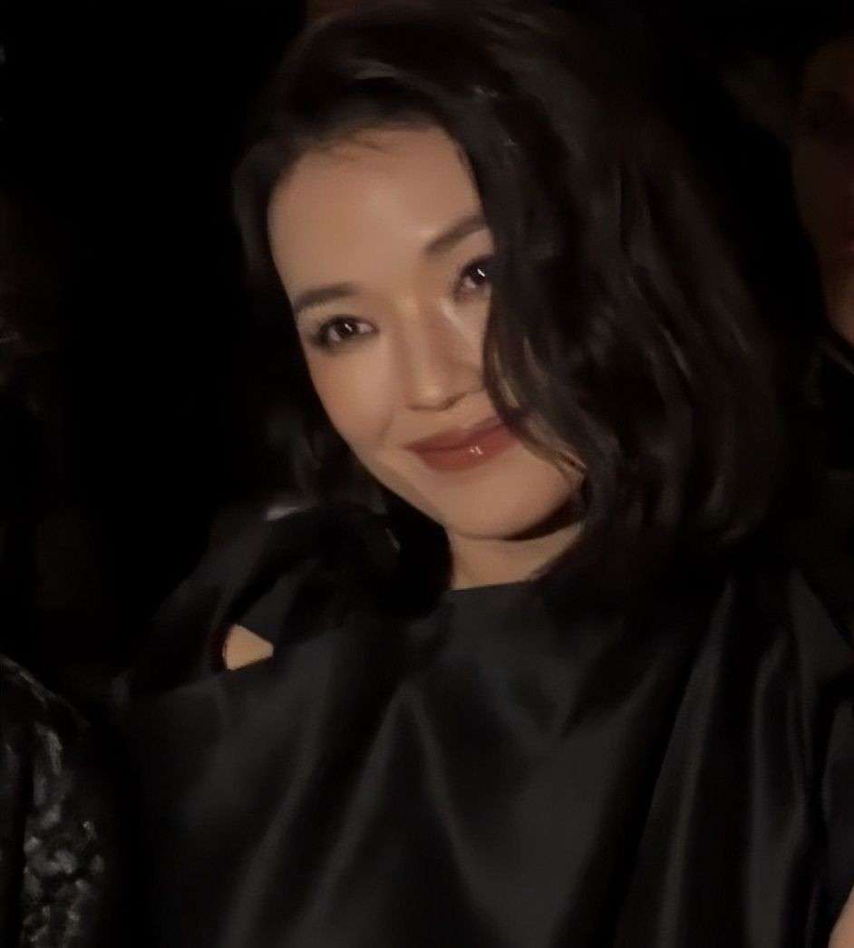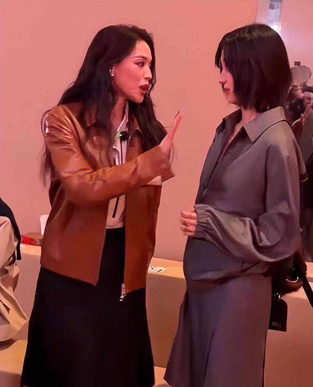 她端坐在秀场的第一排,脊柱笔直如松,肩颈舒展,姿态挺拔却不生硬。偶尔与邻座的韩素希低语,轻抬手、浅微颔首,动作自然且毫无造作,眼神沉静且包容——这份由内而外散发的沉稳气场,绝非流量叠加或是剧本练习所能复制。