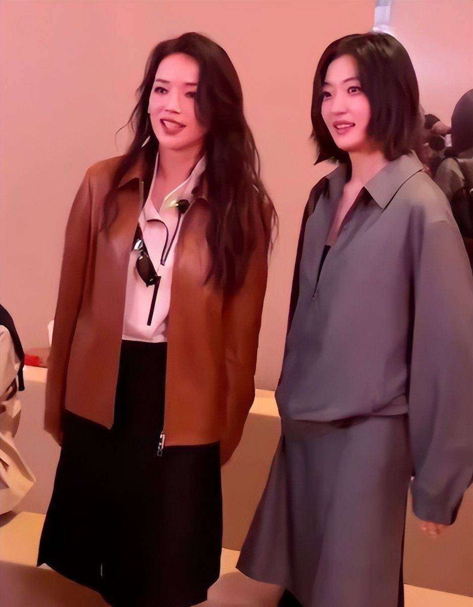 我们逐一细看,慢慢还原每一位的真实质感。首先映入眼帘的无疑是舒淇——她这一回,将时光偏爱四个字,化作每一道眼神、每一次呼吸。她穿着一件焦糖色的哑光皮衣外套,内搭一条流动感十足的纯黑长裙。整体造型没有过多繁复设计,却因为她个人的气质和节奏,自然地形成了独特的韵律感。