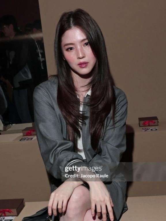 她选择了一套米白与浅灰拼接的休闲套装,剪裁简洁,线条流畅,突出了她如初雪般洁白的肌肤,五官精致而耐看。她的短发干练,耳边微微蓬松,既有少年气的清爽,又透出成长中的内敛力量。她的美不具攻击性,初见未必夺目,但越看越让人觉得温暖回甘。这种未经雕饰的本真感,在精致过剩的时尚场域中,反而显得格外难得。