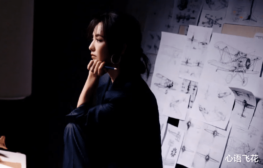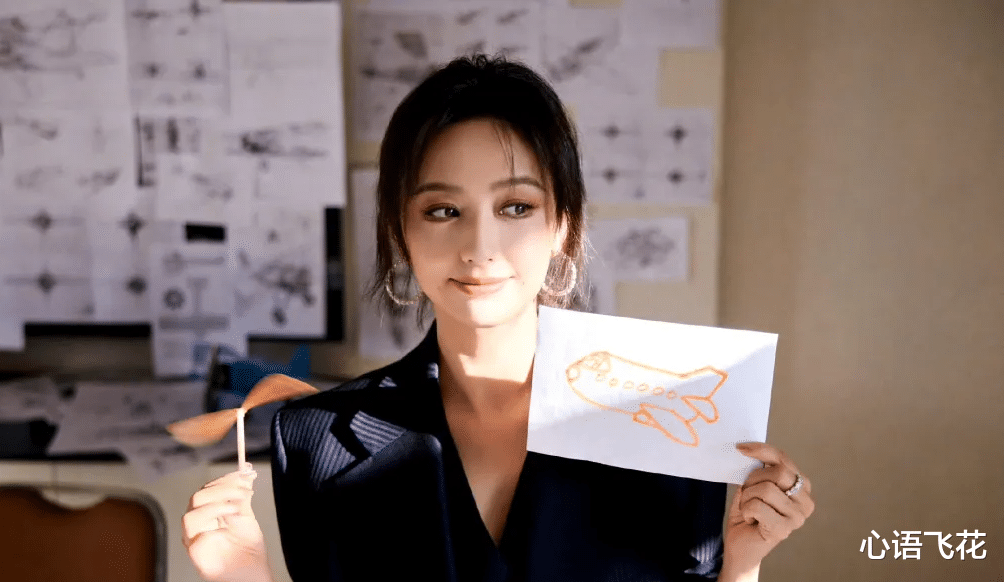 在这组照片中,佟丽娅穿着蓝色的条纹西装,很有都市白领的质感。佟丽娅扎起头发,戴着两个大耳环,手上举着一幅画好的飞机模型,三角板和铅笔也成了构图的一部分。