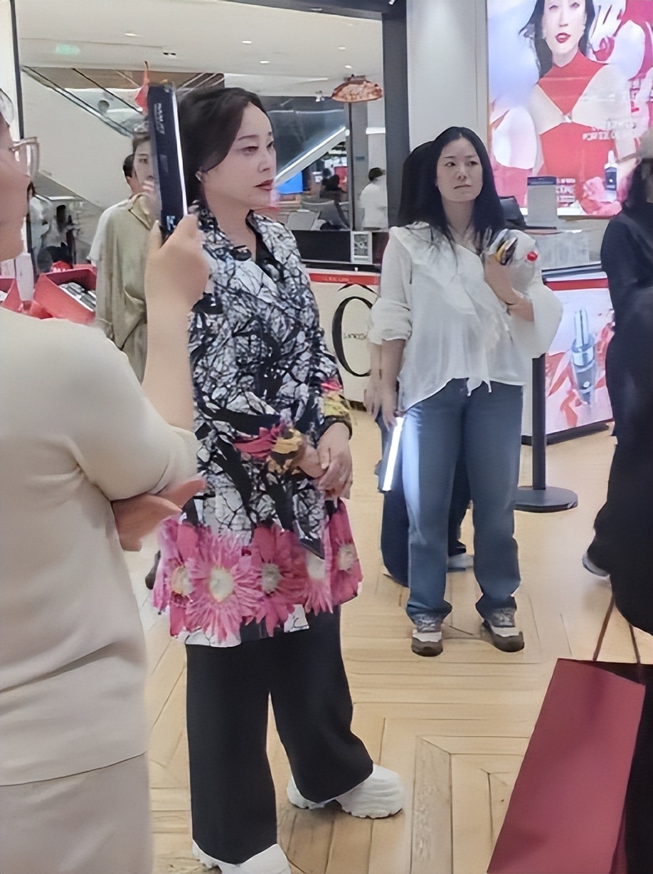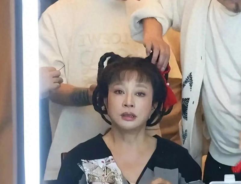 从网友拍到的生图来看,刘晓庆当天化了很浓的妆,脸上涂的粉很厚。